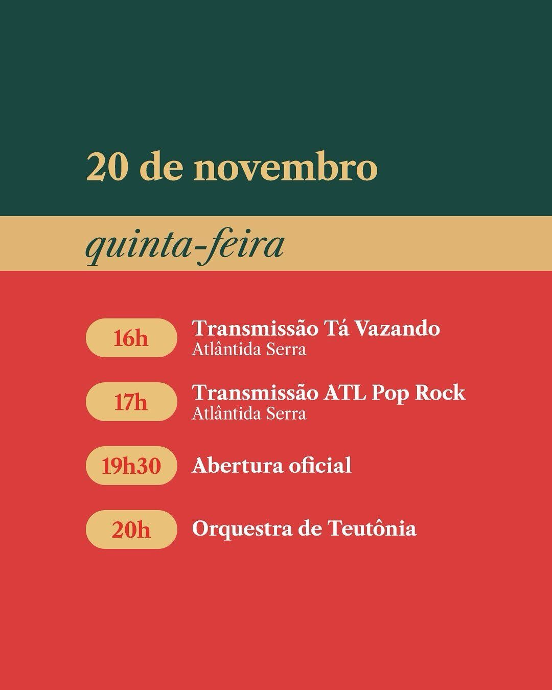 📍 De 20 a 23 de novembro - de quinta a domingo!
