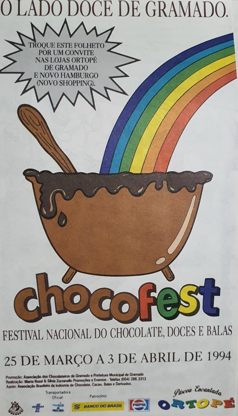 Às 18h30min do dia 25 de março de 1994, abriram-se as portas dos pavilhões da Prefeitura de Gramado para o 1º Festival Nacional do Chocolate, Doces e Balas – CHOCOFEST, que ocorreu até o dia 03 de abril, domingo de páscoa daquele ano. O evento teve a frente Marta Rossi e Silvia Zorzanello Promoções e Eventos. Como patrocinadores, Banco do Brasil, Ortopé e Pepsi e apoiadores, Sebrae e Varig.