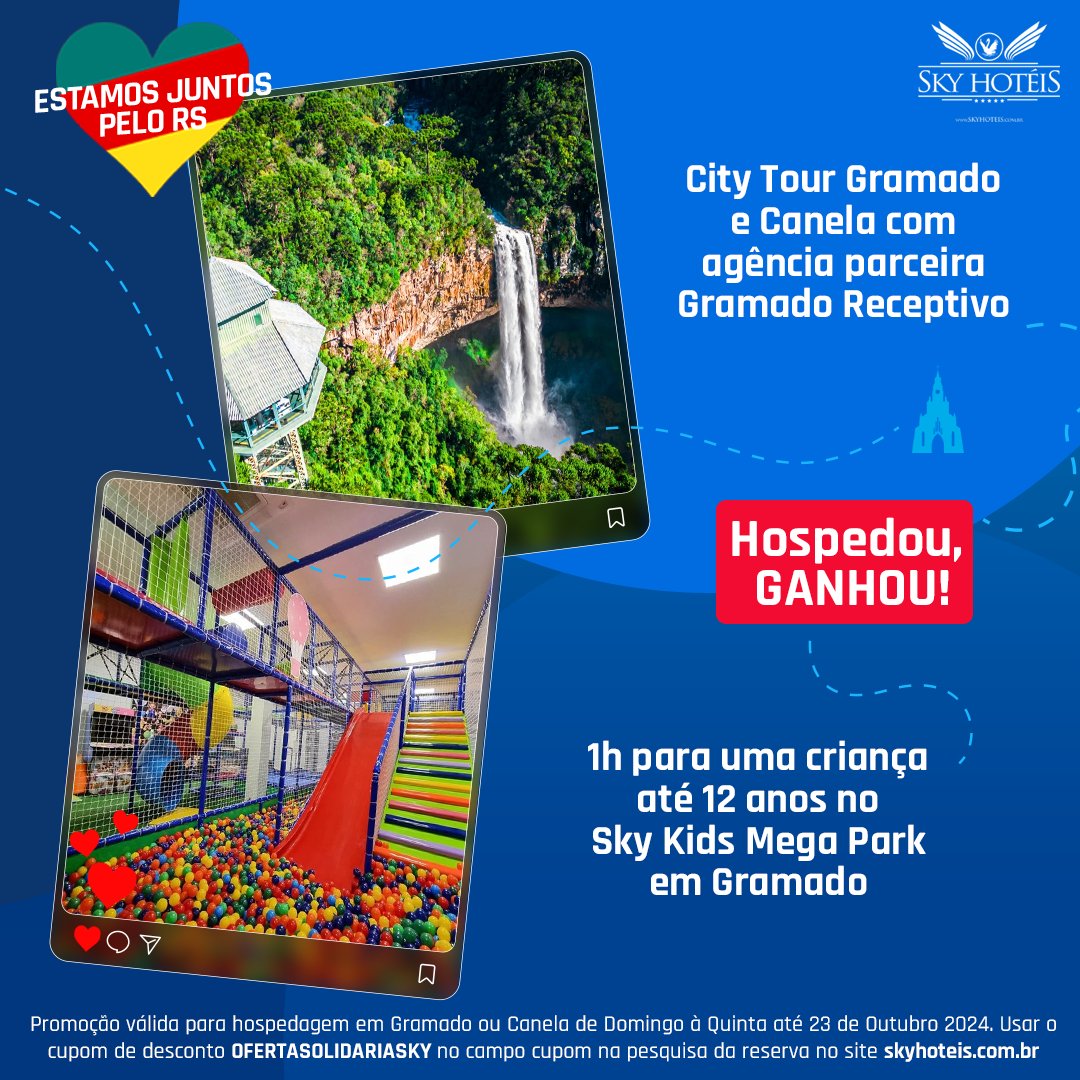 Além disso, ganhe um city tour por Gramado e Canela com a agência parceira @gramadoreceptivo e uma hora no @skykidsgramado para uma criança de até 12 anos.😍