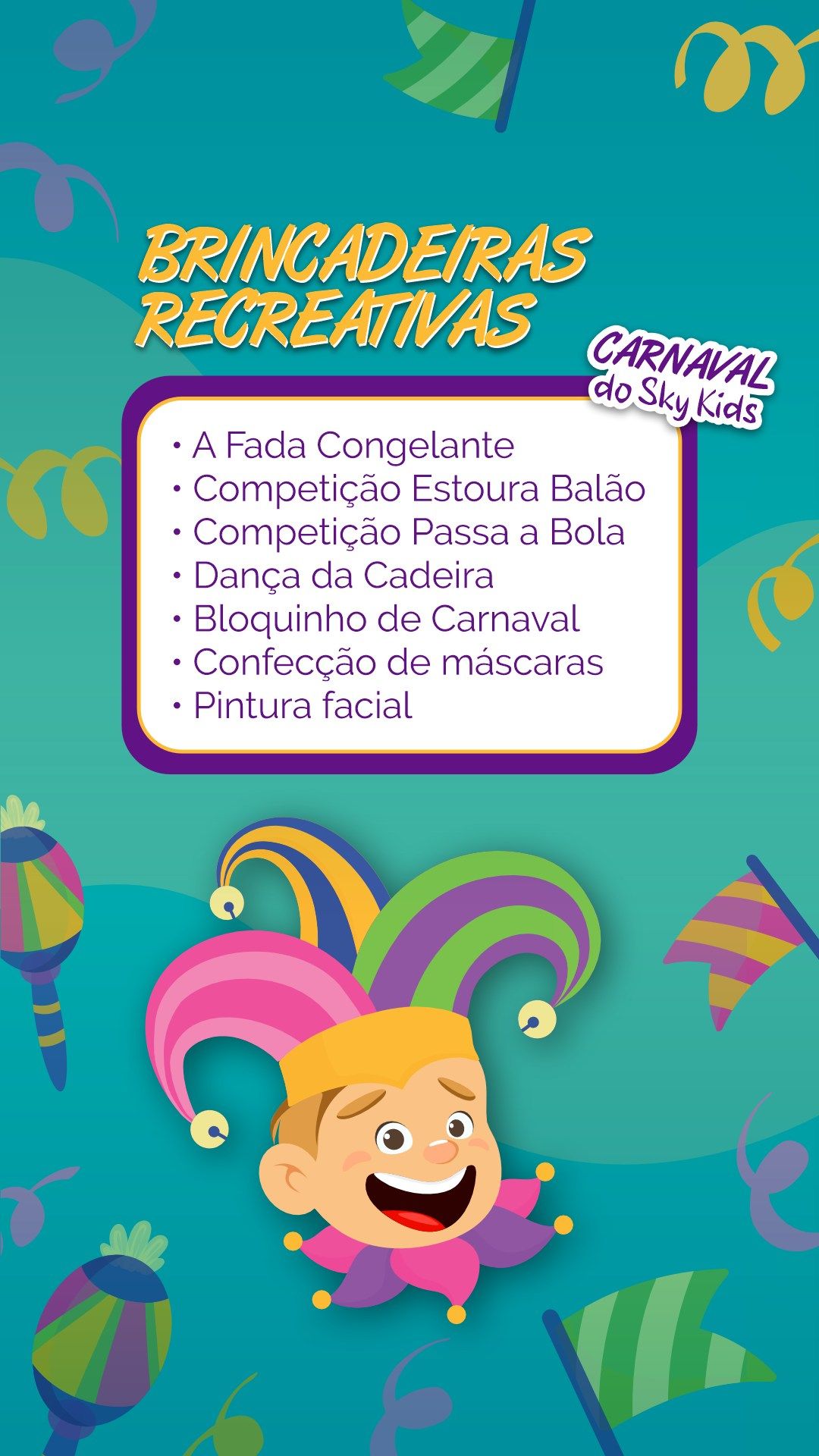 De 14 a 17 de fevereiro a criançada vai fazer folia aqui no Sky Kids!