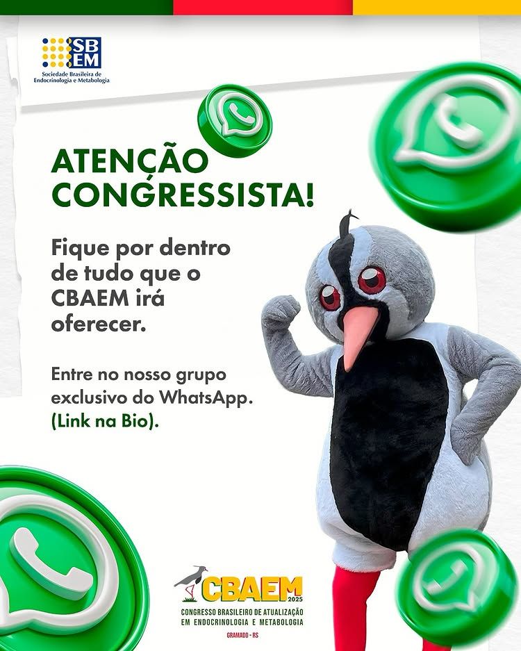 Congresso Brasileiro de Atualização em Endocrinologia e Metabologia, o CBAEM 2025, de 03 a 06 de setembro, em Gramado (RS).