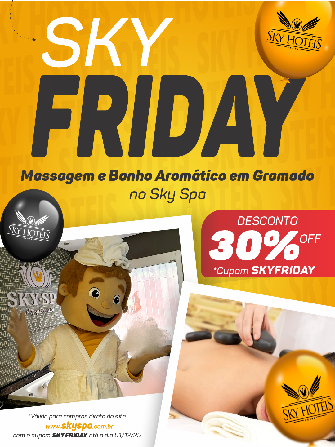 - 30% OFF no SKY SPA é valido para compras direto no site www.skyspa.com.br com o cupom SKYFRIDAY