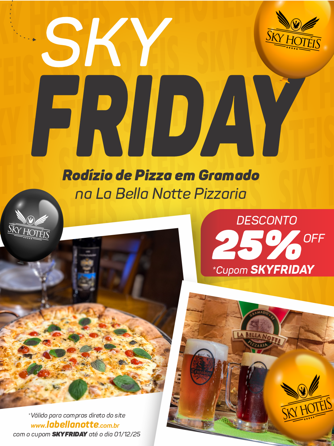 - 25% OFF no RODÍZIO DE PIZZA é valido para compras direto no site www.labellanotte.com.br com o cupom SKYFRIDAY