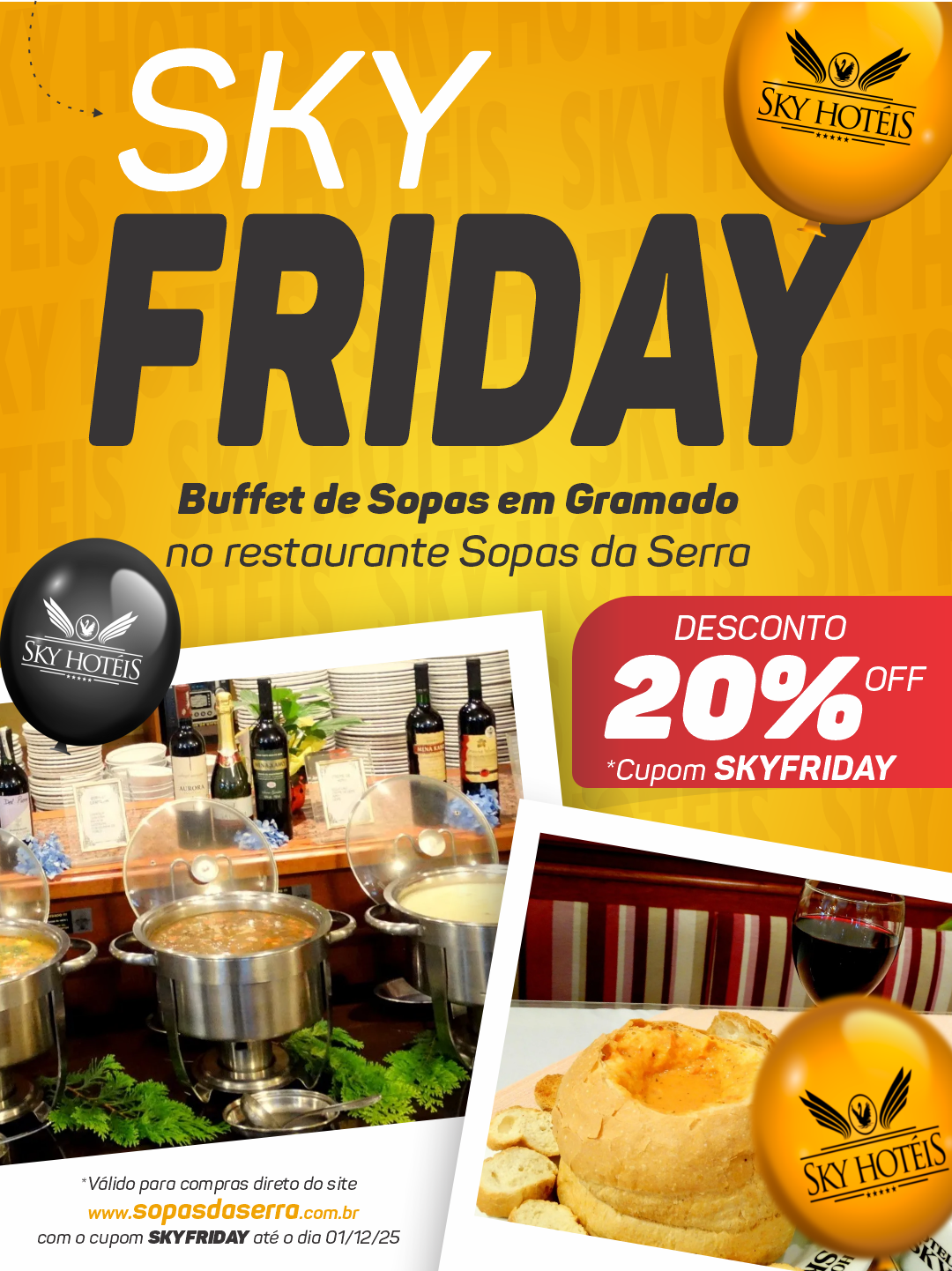 - 20% OFF no BUFFET DE SOPAS é valido para compras direto no site www.cantinapremium.com.br com o cupom SKYFRIDAY