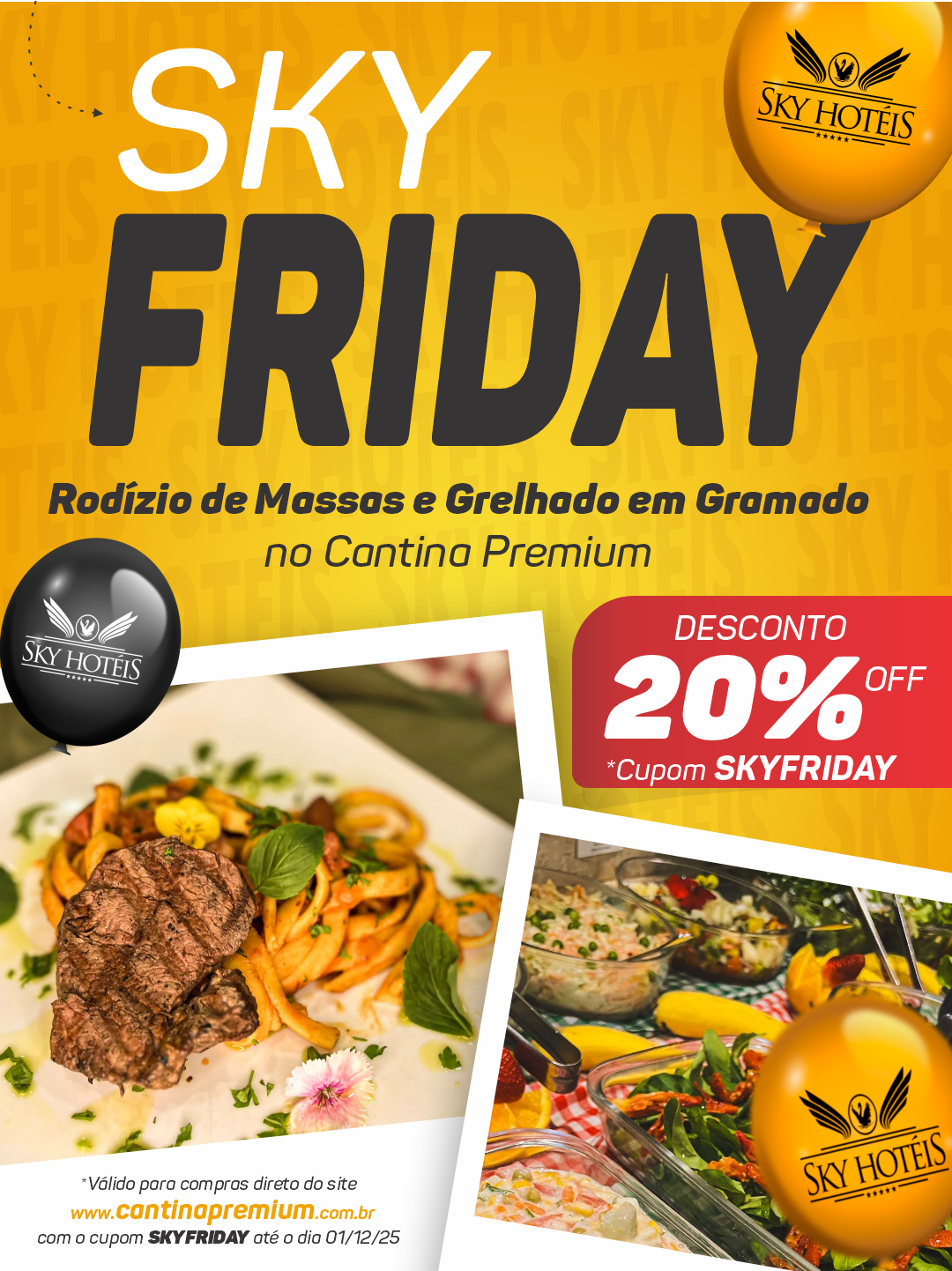 - 20% OFF no RODÍZIO DE MASSAS, GRELHADOS E RISOTOS é valido para compras direto no site www.cantinapremium.com.br com o cupom SKYFRIDAY