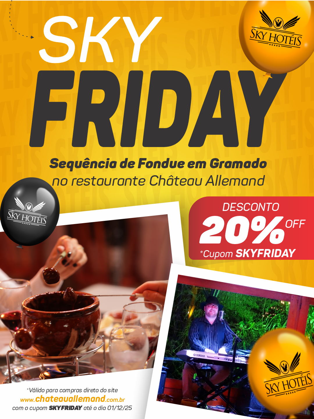 - 20% OFF no SEQUENCIA DE FONDUE é valido para compras direto no site www.chateauallemand.com.br com o cupom SKYFRIDAY