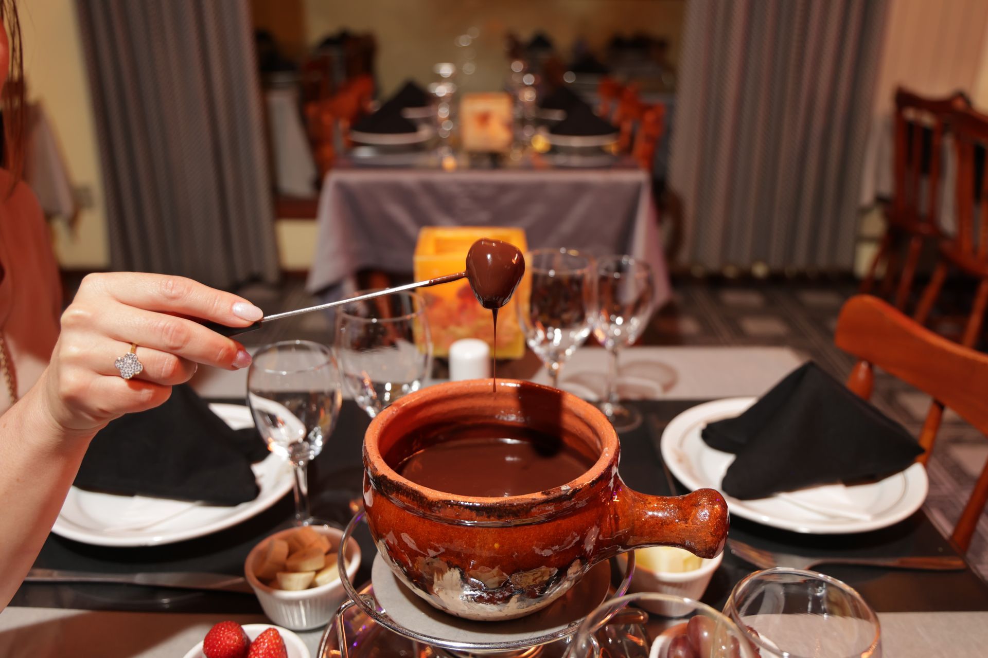 A casa conta com um ambiente elegante, climatizado e à luz de velas. Durante o jantar, os clientes se deliciam com uma maravilhosa sequência de fondue (prato típico da região) que é iniciada pelo Fondue de Queijo, seguido do Fondue de Carnes (na pedra), chegando finalmente ao Fondue de Chocolate.