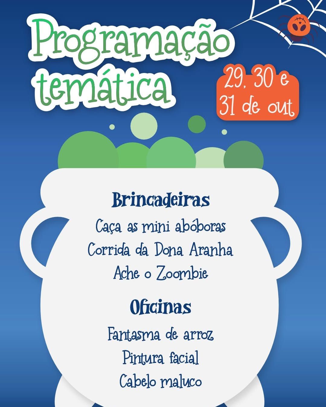 Nos dias 29, 30 e 31 de outubro vamos ter uma programação temática que vai garantir muita diversão