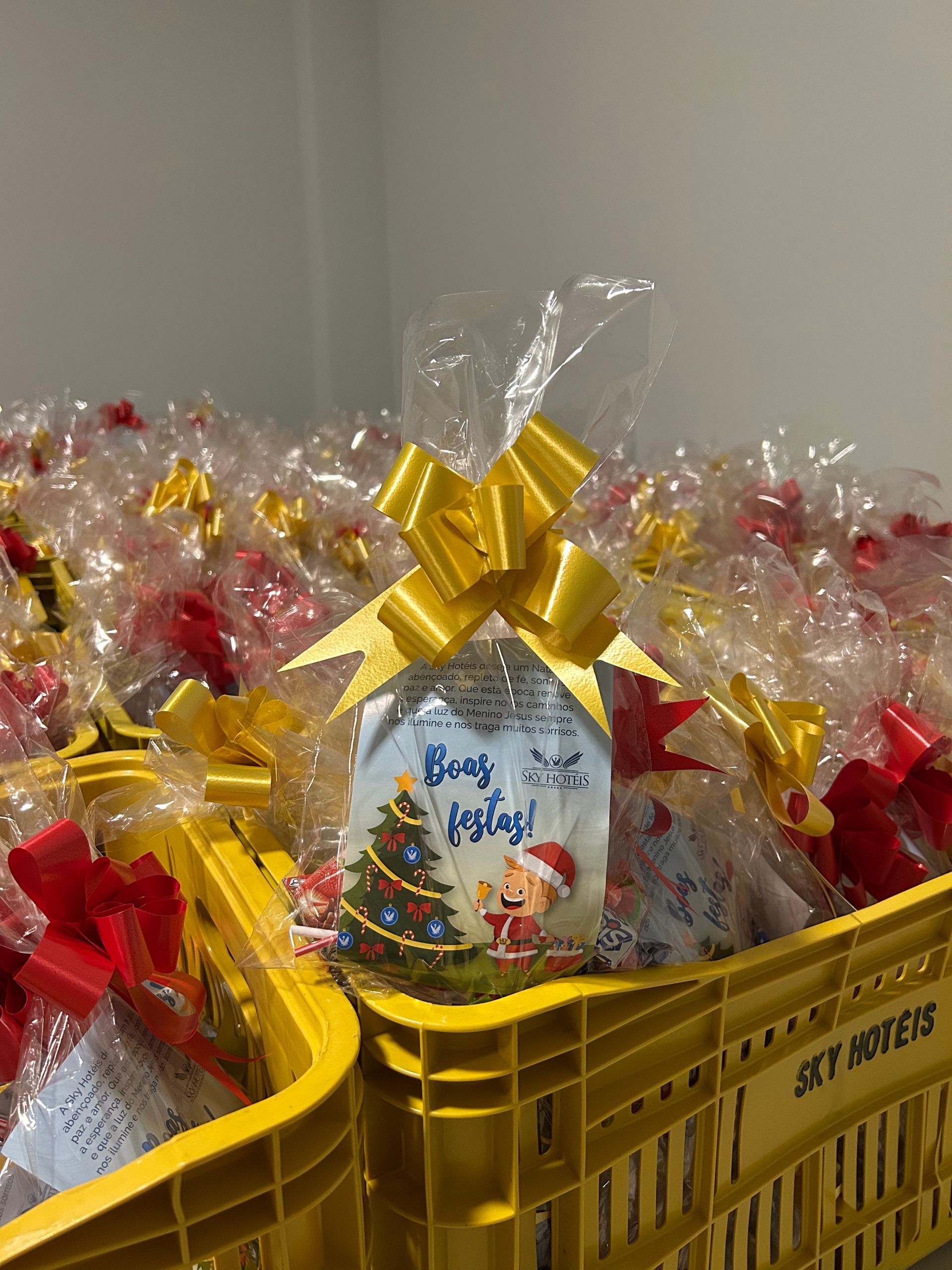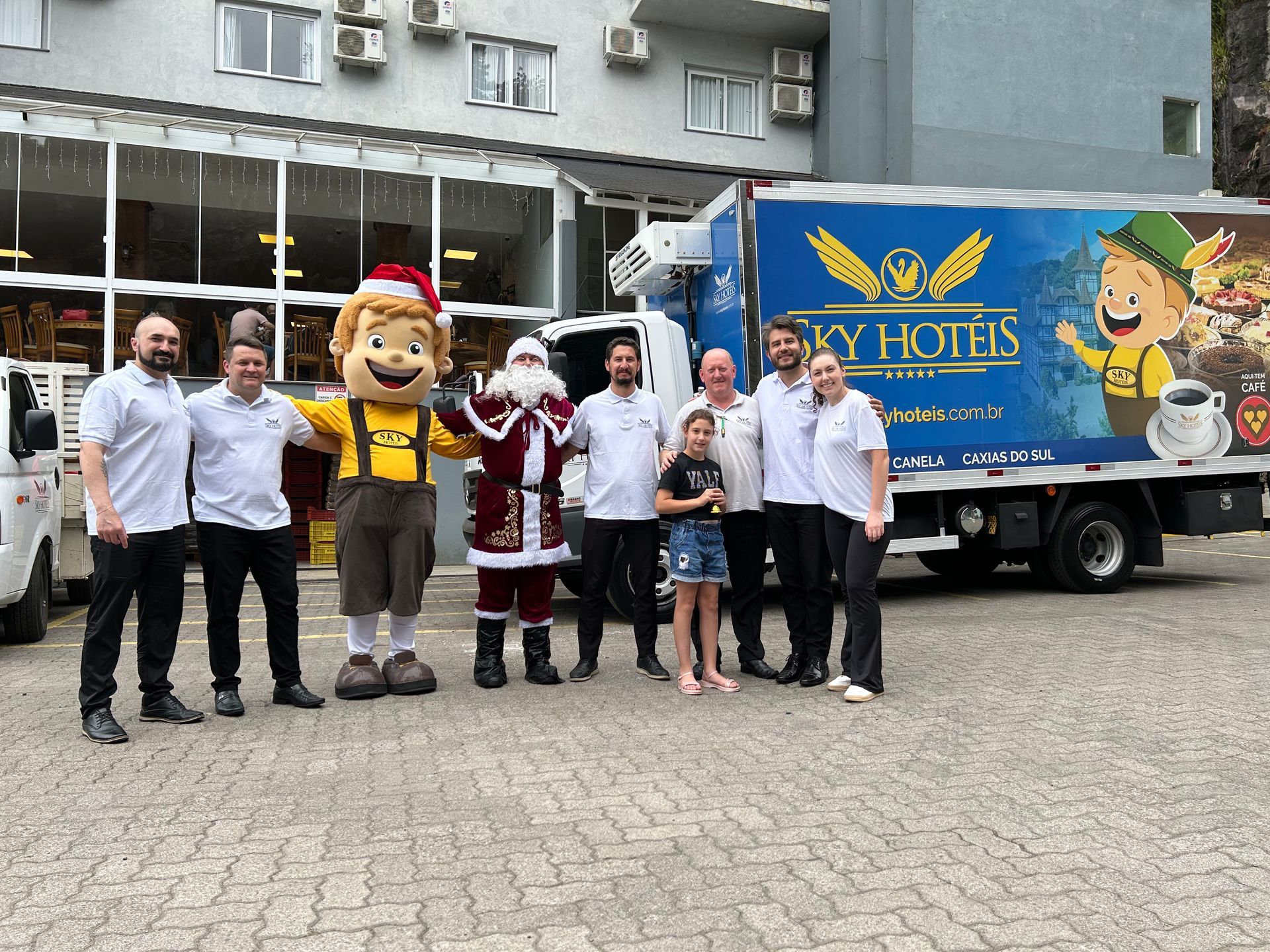 Já no ano de 2025, realizamos a primeira edição do Natal Solidário. Uma iniciativa da Sky Hotéis em parceria com outras empresas da região, que transformou o Natal de muitas crianças de Gramado. Através do Sky Kids Mega Park realizamos uma arrecadação de doces e brinquedos novos ou em bom estado. Caixas de arrecadação foram distribuídas em todas as unidades da Sky Hotéis e a doação espontânea da comunidade, hóspedes e empresas parceiras nos permitiu produzir mais de 950 kits que foram distribuídos nos bairros de Gramado. A entrega destes kits foi muito animada, com a presença do Skyzinho (mascote da Sky Hotéis), Papai Noel e voluntários, espalhando a magia do Natal pelos bairros Carazal, Vázea Grande, Viação Férrea, Serra Grande, Vila do Sol e Três Pinheiros. Além dos bairros, também foi realizada a entrega no Instituto Santíssima Trindade de Três Coroas.