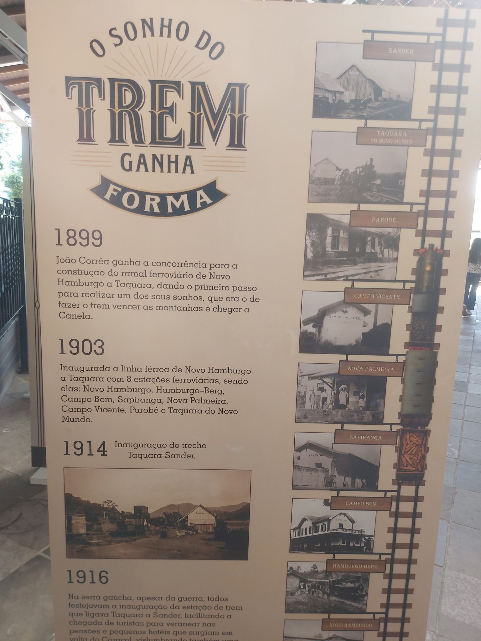 Dentre os temas apresentados na exposição estão o surgimento dos trens no mundo e sua expansão pelo Rio Grande do Sul, aprofundando na construção da estrada de ferro que ligava Porto Alegre a Canela, e que foi fundamental para o desenvolvimento social e econômico da região.