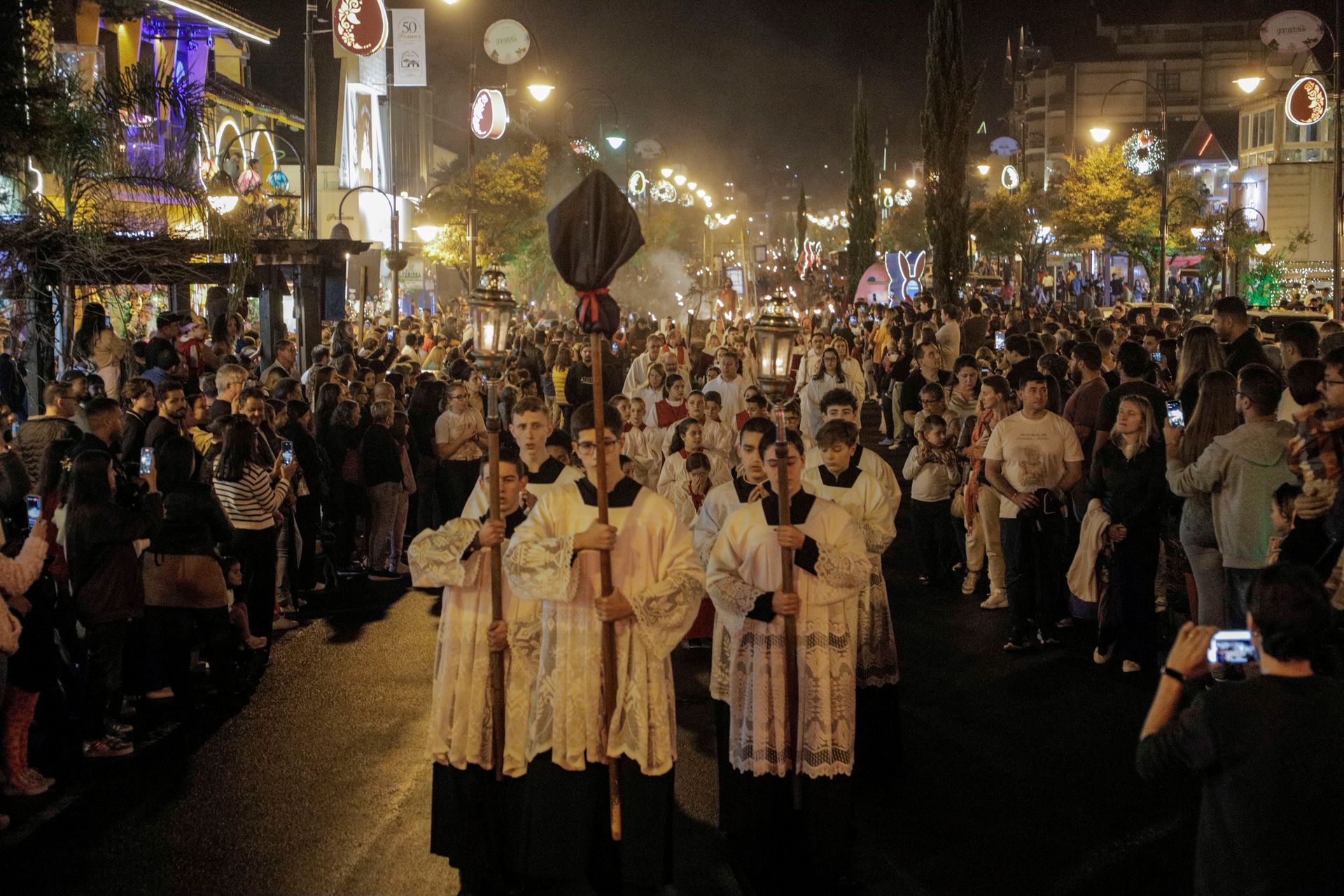 A tradicional Procissão dos Passos ocorre nesta sexta-feira (3), às 20h, na Avenida Borges de Medeiros. Com mais de 500 participantes da Paróquia São Pedro, o cortejo iluminado por tochas percorre o trecho entre a rua Euzébio Balzaretti e a Igreja Matriz.