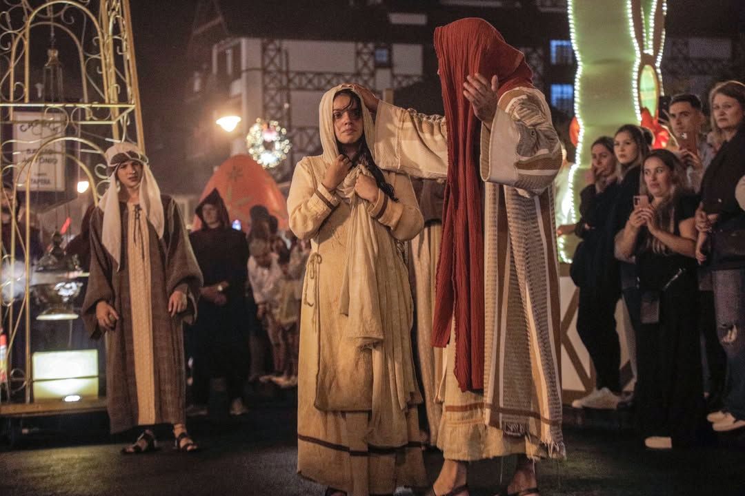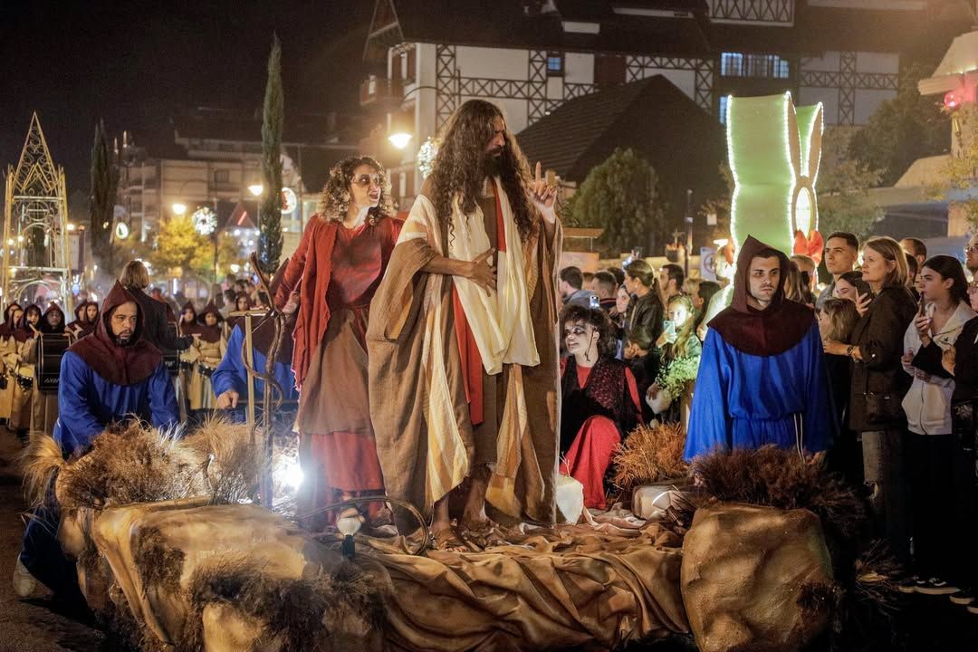 👉🏼 O espetáculo de duas horas terá 11 cenas da Via Crucis encenadas por 45 atores, contando com oito carros alegóricos e cinco turíbulos (incensários). A procissão reúne 14 comunidades e percussionistas das escolas Senador Salgado Filho e Henrique Bertolucci.