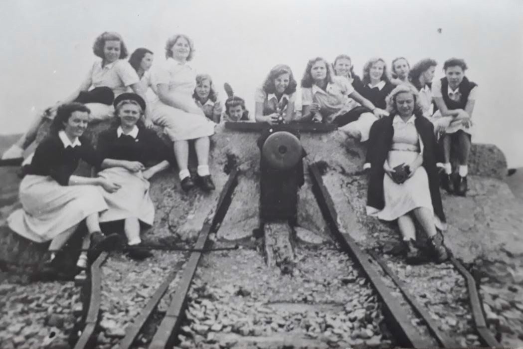 Foto 2 - Moças no muro do rabicho / FOTO: Museu do Trem