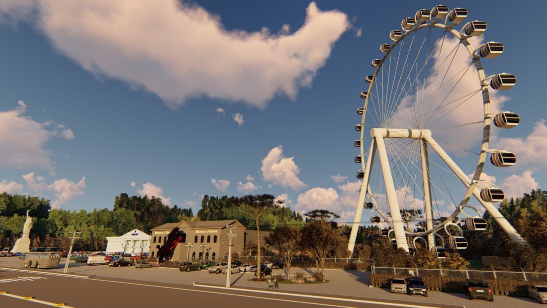 O Parque Mundo a Vapor, de Canela, projeta inaugurar no segundo trimestre de 2024 a Roda Canela, primeira roda-gigante temática do mundo.